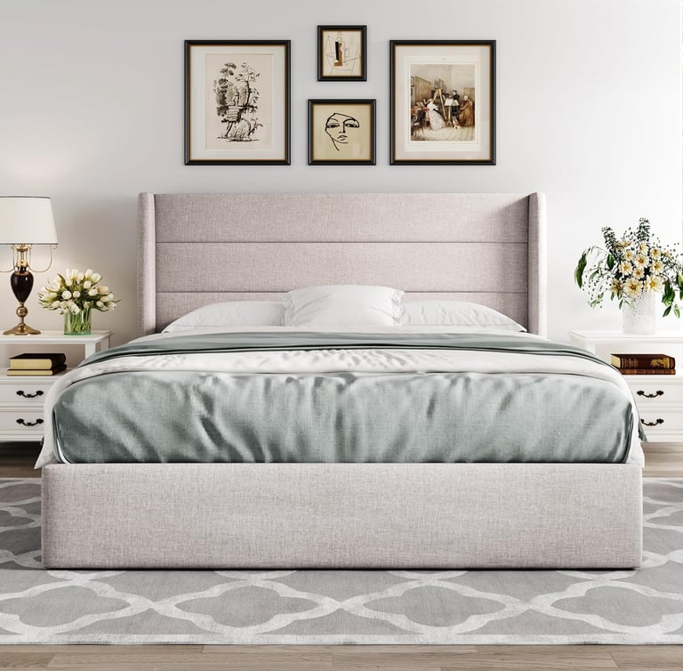 The Allewie Queen Size Lift Up Storage Bed features a sleek and contemporary design that will elevate the look of any bedroom. The wingback headboard adds a touch of elegance and sophistication, while the light beige color complements a variety of decor styles. Whether your bedroom is modern, traditional, or somewhere in between, this bed will seamlessly blend in.