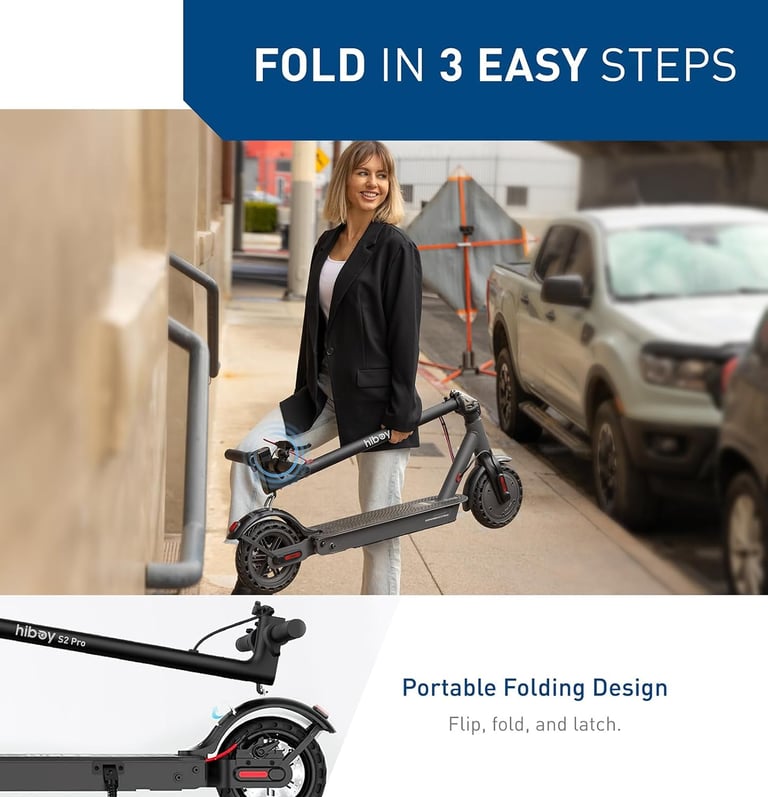 The Hiboy S2 Pro is designed with the rider's comfort in mind. It features 10" solid tires that provide a smooth and stable ride, even on bumpy roads. The scooter also comes with an optional seat, allowing you to choose between sitting or standing while riding. The folding design makes it easy to carry and store, making it ideal for commuters who need to take public transportation or have limited storage space.
