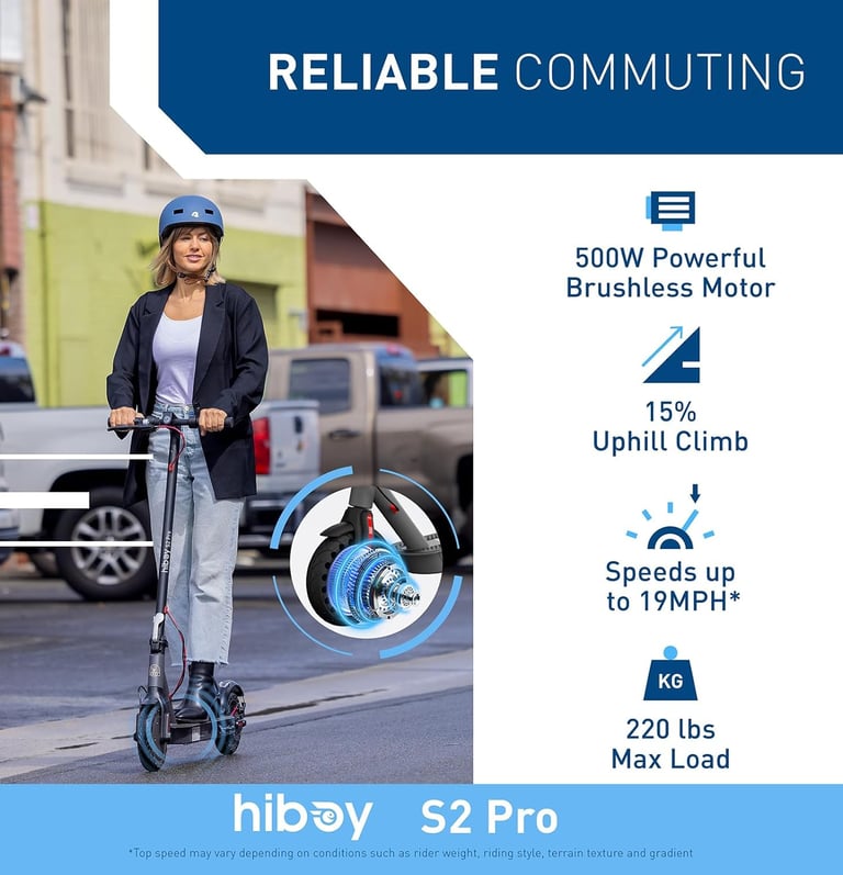 The Hiboy S2 Pro is equipped with a 500W motor that provides smooth acceleration and a top speed of 19 mph. This scooter can effortlessly conquer hills and tackle uneven terrain, making it suitable for both urban and suburban environments. Say goodbye to long and tiring walks, and hello to a faster and more enjoyable commute!