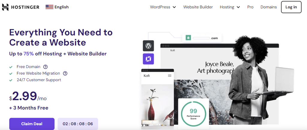 Free domain: Hostinger provides a free domain name with select hosting plans, saving you an additional $9.99.