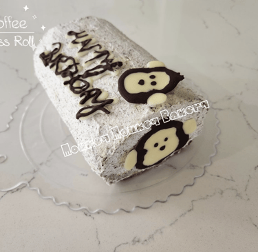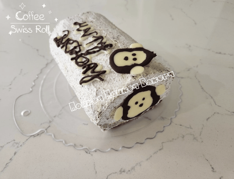I baked a Swiss roll with espresso coffee flavor for my monkey family's birthday.